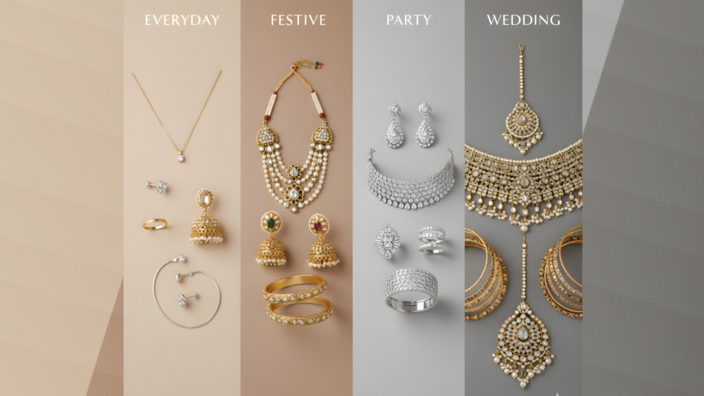 - Festive Luxe: Jhumkas, bangles, kundan chokers.