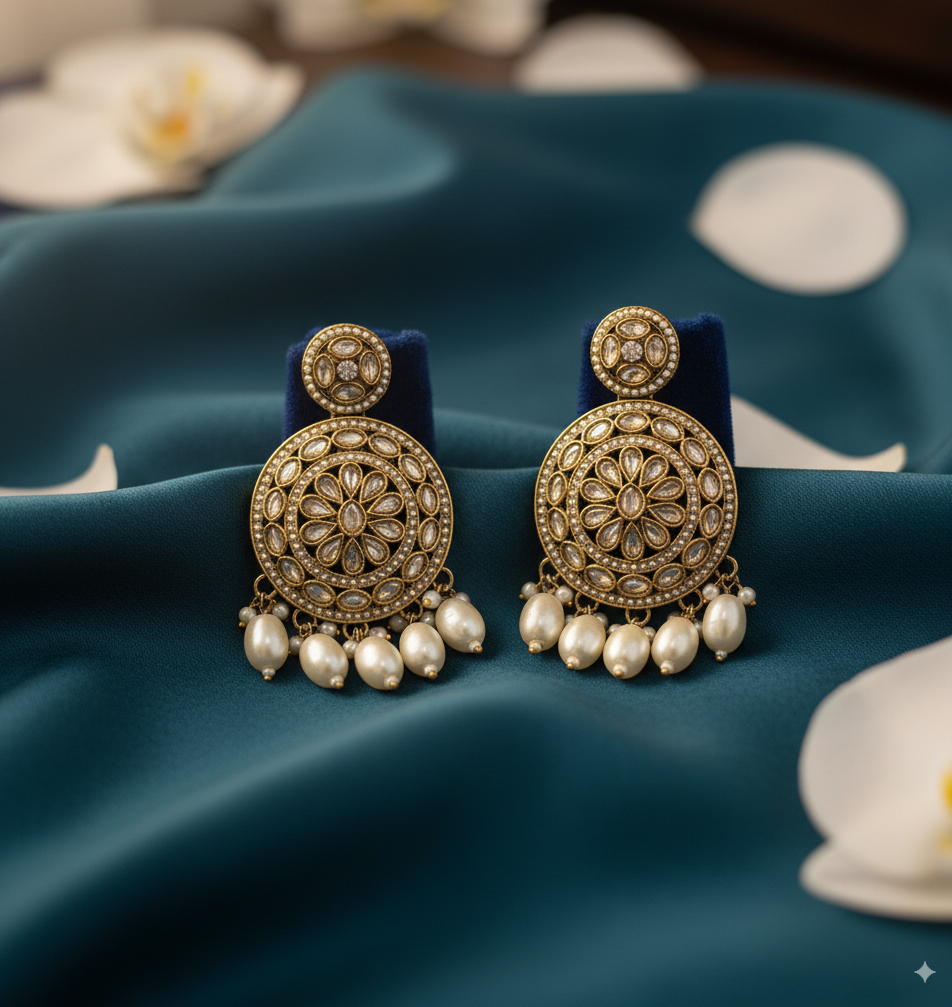 Exquisite Craftsmanship: Gold-plated design with kundan stones and pearl bead accents.