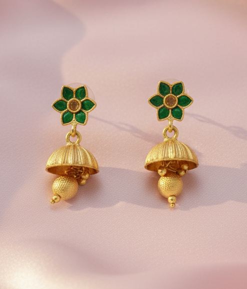 Antique Gold-Plated Finish: Premium craftsmanship with fine artistry and green stone embellishments for a regal look.