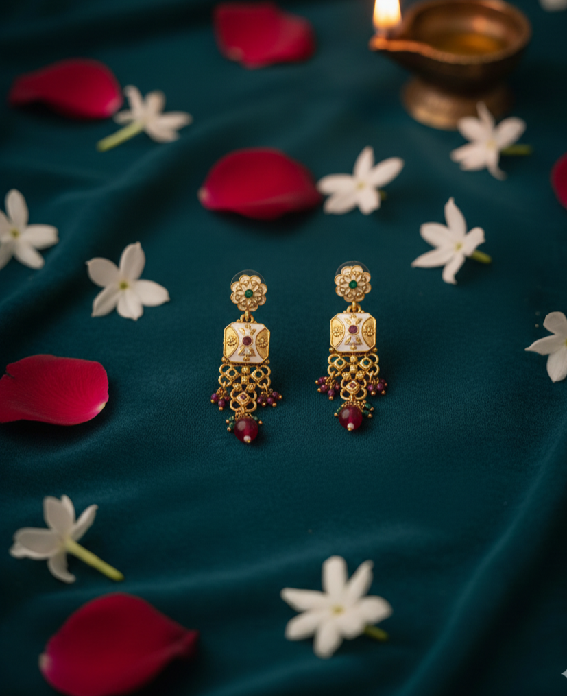 Matching Earrings: Comes with coordinated statement earrings for a complete bridal look.