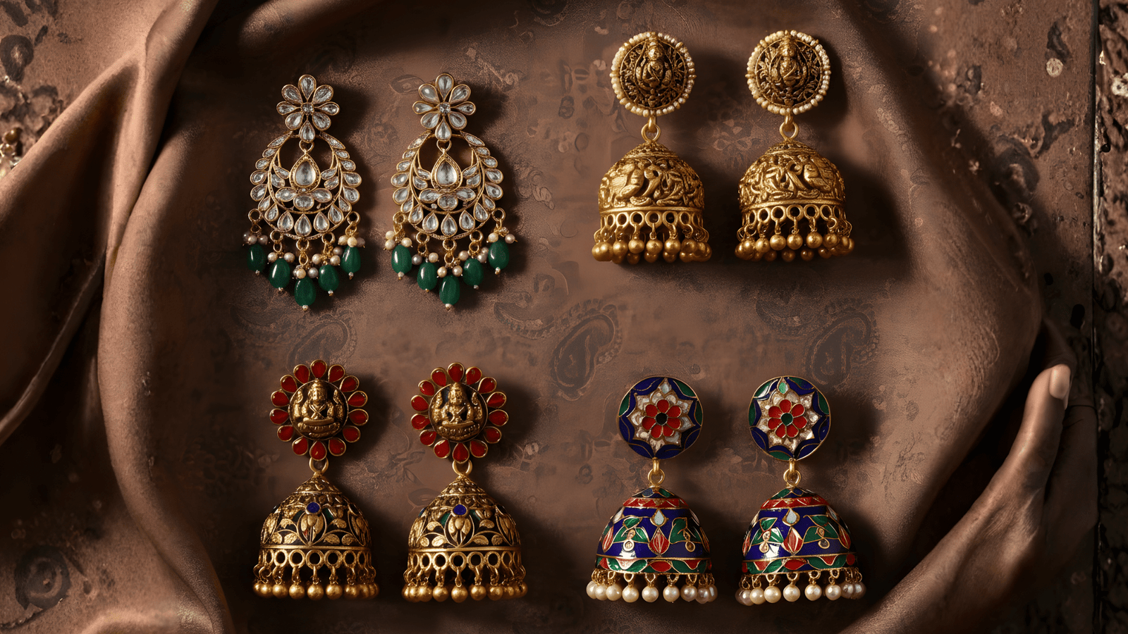 • Daily Wear: Lightweight enamel or minimal jhumkas for easy elegance.