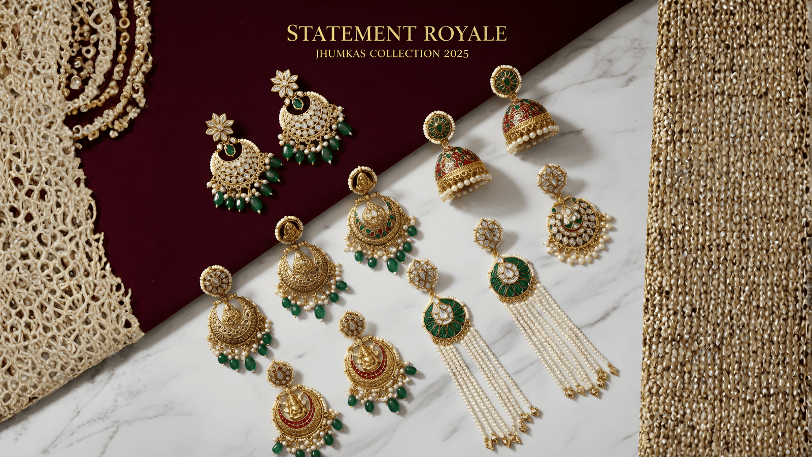 • Heritage Designs: Temple and kundan jhumkas for weddings and festivals.