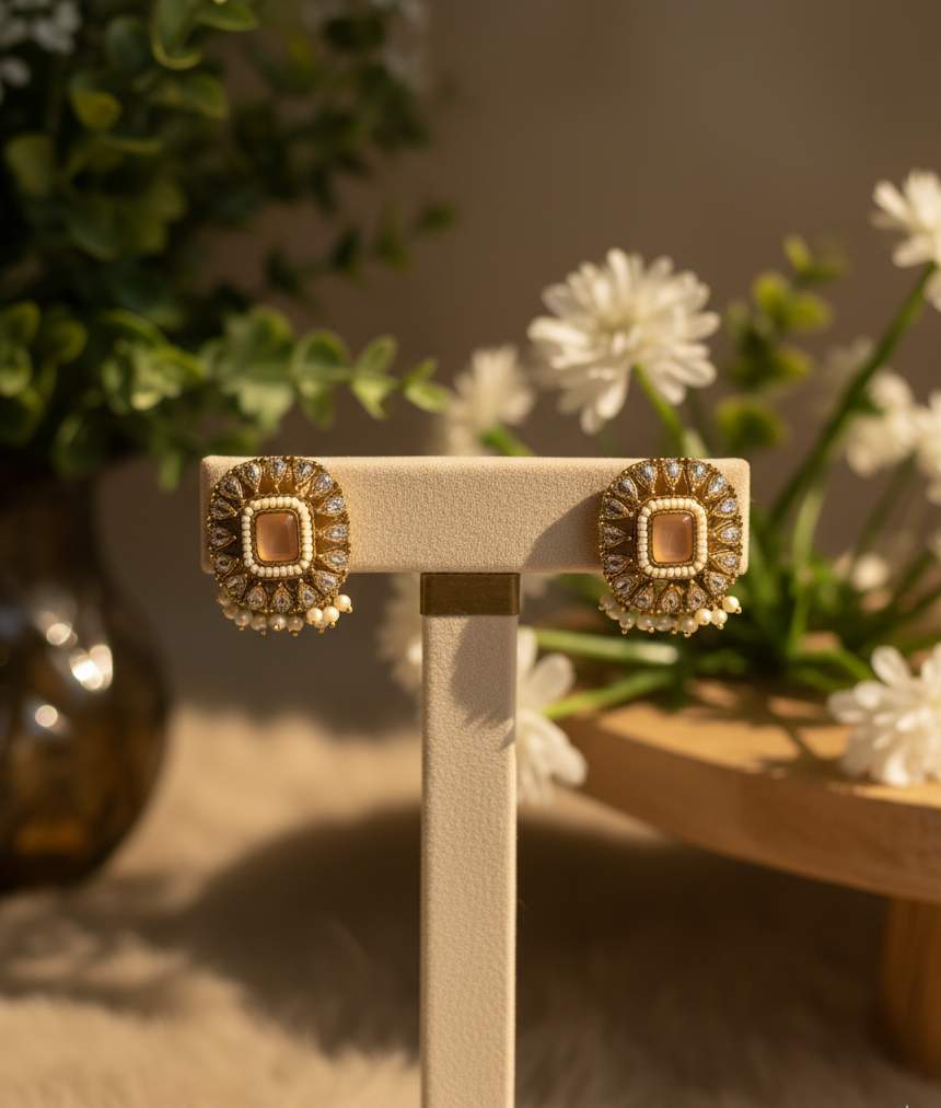 Elegant Design: Square centerpiece surrounded by intricate stonework, perfect for bridal and festive wear.