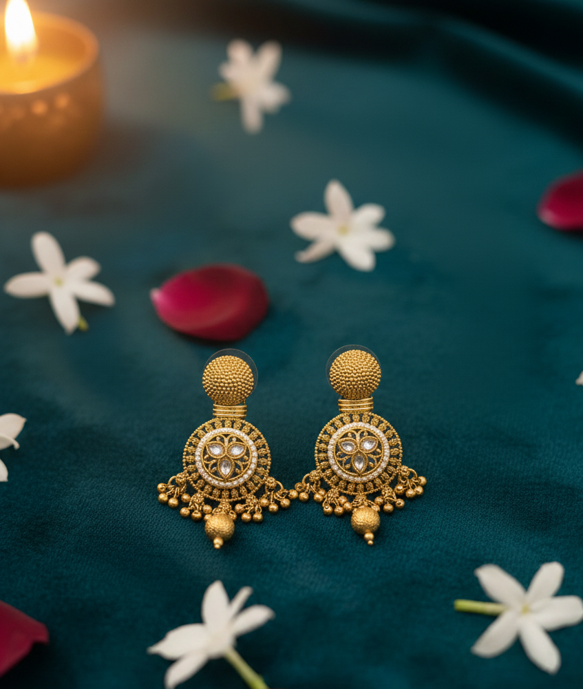 Intricate Craftsmanship: Antique finish with kundan embellishments and bead hangings.